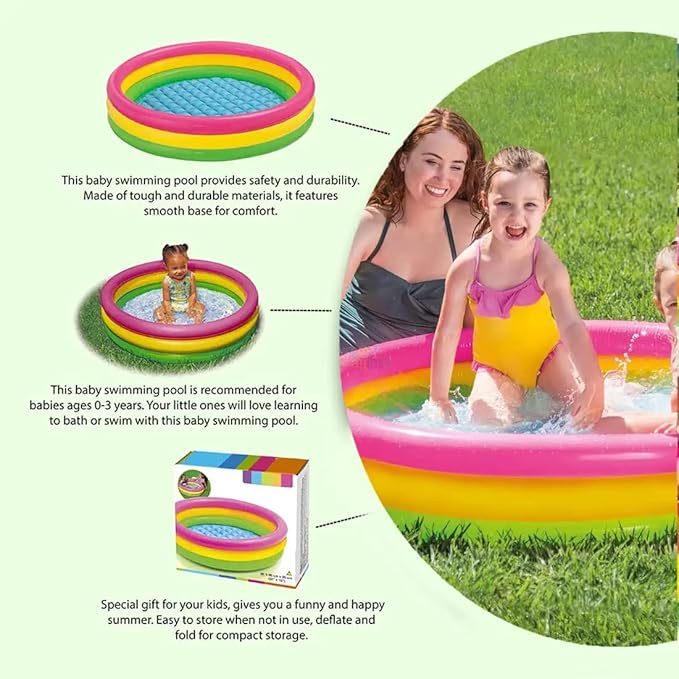 - FUN IN THE SUN: Enjoy the charm of summer with the fun, which is ideal for usage in the pool, beach, friends' houses, and other locations. Sunset Glow Pool - Inflatable Soft Baby Pool Bath Water Tub. Babies and kids can play, bathe, and so on.