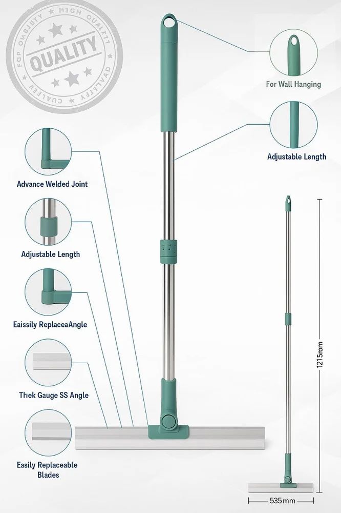 ✅ Silicone Blade Design – Streak-free cleaning on tiles, wood, marble & glass